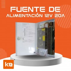 Diseñada para entregar 12V DC con una salida total de 20A, esta fuente es capaz de alimentar múltiples cámaras y dispositivos de seguridad de manera simultánea, manteniendo una distribución eléctrica estable y segura.